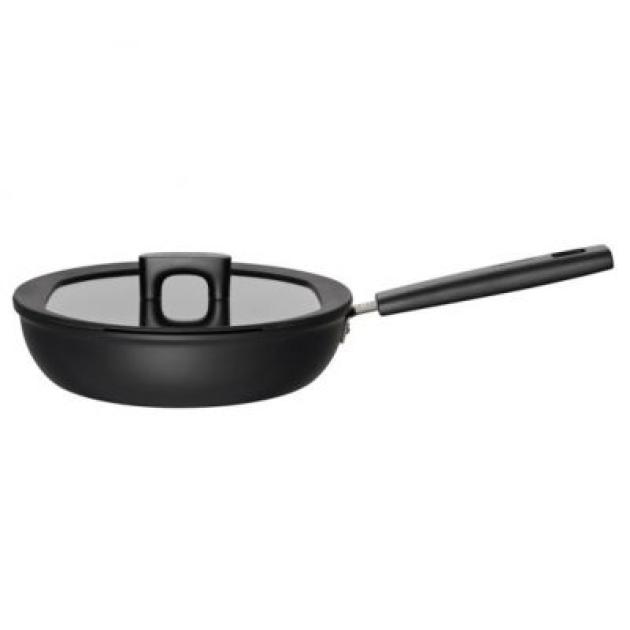 Fiskars alumīnija panna sarežģītai ēdiena pagatavošanai. Neadhezīvas īpašības, Hardtec Superior virsma, bakelīta drošs rokturis, biezāks enerģiju taupošs dibens, moderns melns dizains.