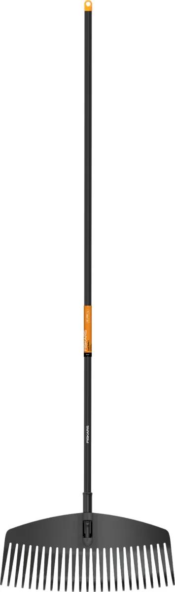 Fiskars Solid L platais grābeklis ir paredzēts lielu zāliena platību apstrādei. Izturīgie, elastīgie pirksti novērš zaru un lapu aizķeršanos.