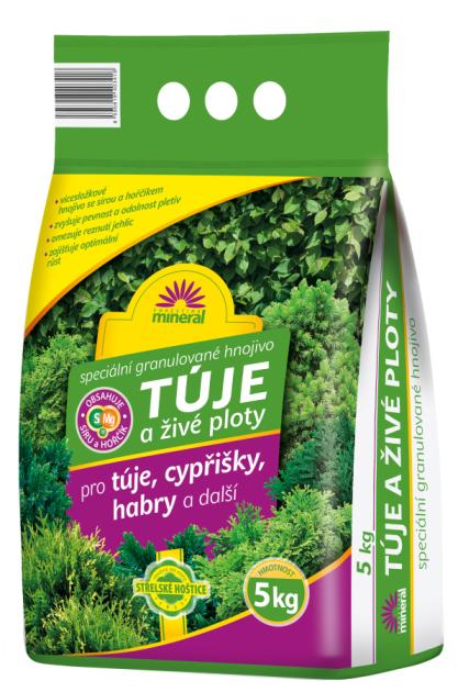 Mēslojums tūjām un dzīvžogiem ir īpašs granulveida daudzkomponentu NPK mēslojuma maisījums ar magniju un sēru. Mēslojums ir piemērots tūju, ciprešu, skābkoku u.c. dzīvžogu barošanai.