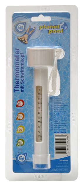 Vienkāršs un uzticams termometrs, kas paredzēts ūdens temperatūras mērīšanai peldbaseinos. Termometram ir iekļauts pludiņš, kas uztur termometru virspusē pareizā stāvoklī. Termometram ir arī aukla termometra piestiprināšanai pie baseina malas.