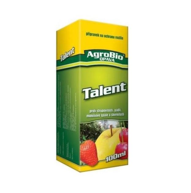 Talent ir sistēmisks smidzināms fungicīds ar profilaktisku un ārstniecisku iedarbību.pret kodolu raupjvaboli, ābolu puvi, vīnogulāju puvi, zemeņu, aprikožu un persiku puvikvrnitosti listov čerešní a višní, moníliovej spále kvetov a letorastov kôstkovín, múlapu plankumainība un slimības, kas izraisa dažādu veidu lapu plankumainību uz dekoratīvajiem augiem. Talants ir nekaitīgs bitēm un citiem derīgiem organismiem, piemēram, plēsīgām ērcēm (Typhlodromus pyri), plēsīgiem zirnekļiem, bišu dzegužpirkstītēm, zeltbiksēm u. c. Talent ir piemērots fungicīds integrētai augļu dārzu aizsardzībai. talent aktīvā viela ātri iekļūst augu audos, un pilnīga noturība pret lietus iedarbību tiek sasniegta 1 stundu pēc lietošanas. Talent fungicīdu lieto ne vairāk kā 2 reizes veģetācijas periodā. Lai novērstu rezistences veidošanos, Talent ieteicams lietot pārmaiņus ar produktiem ar citu iedarbības veidu, piemēram, strobilurīniem, IQ-Crystal u. c.